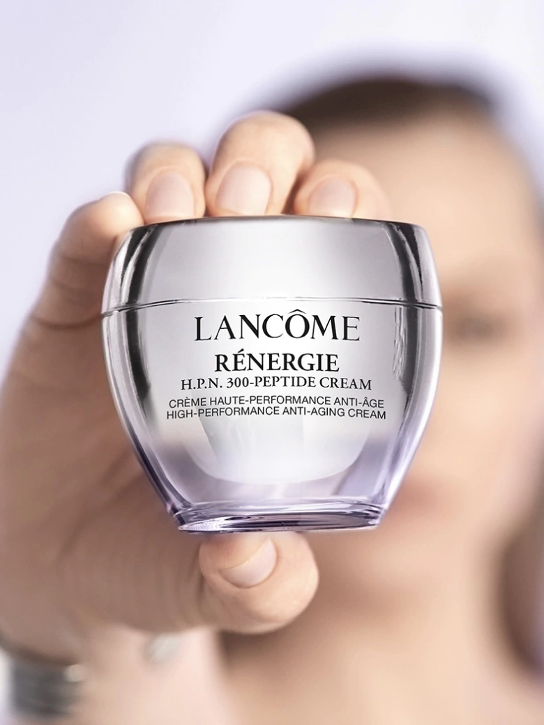 Por primera vez una fórmula con ácido hialurónico, 300 tipos de péptidos y niacinamida, en una crema de alto rendimiento. La concentración más alta creada por Lancôme y en fórmula de rápida absorción.